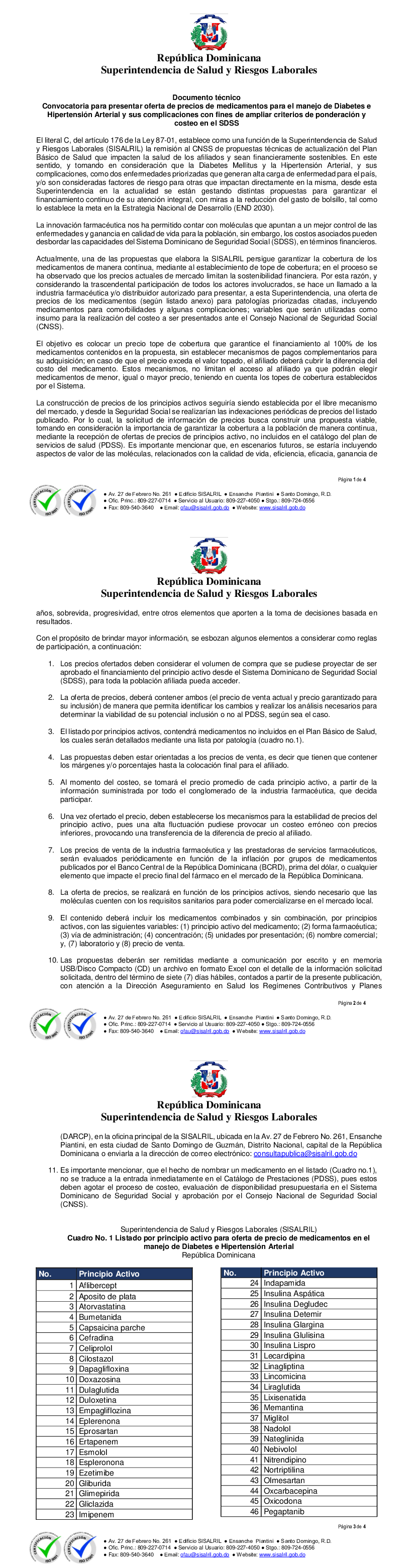 Avisos Convocatorias Avisos Convocatorias TituloDescripcionVersionTamañoHitsFecha de adicionDescargar Convocatoria para presentar oferta de precios de medicamentos para el manejo de Diabetes e Hipertensión Arterial y sus complicaciones con fines de ampliar criterios de ponderación y costeo en el SDSS409.60 KB112dom-Feb-2025 DescargarPrevisualizar Ver en PDFImprimir página