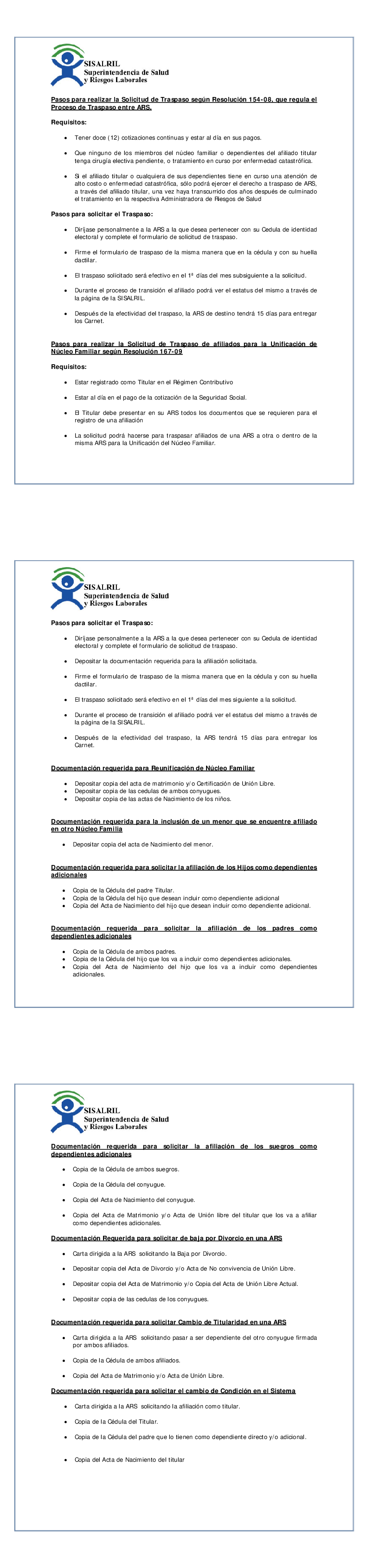 Pasos para realizar la Solicitud de Traspaso según Resolución 154-08, que regula el Proceso de Traspaso entre ARS | 44.89 KB | DescargarPrevisualizar |
