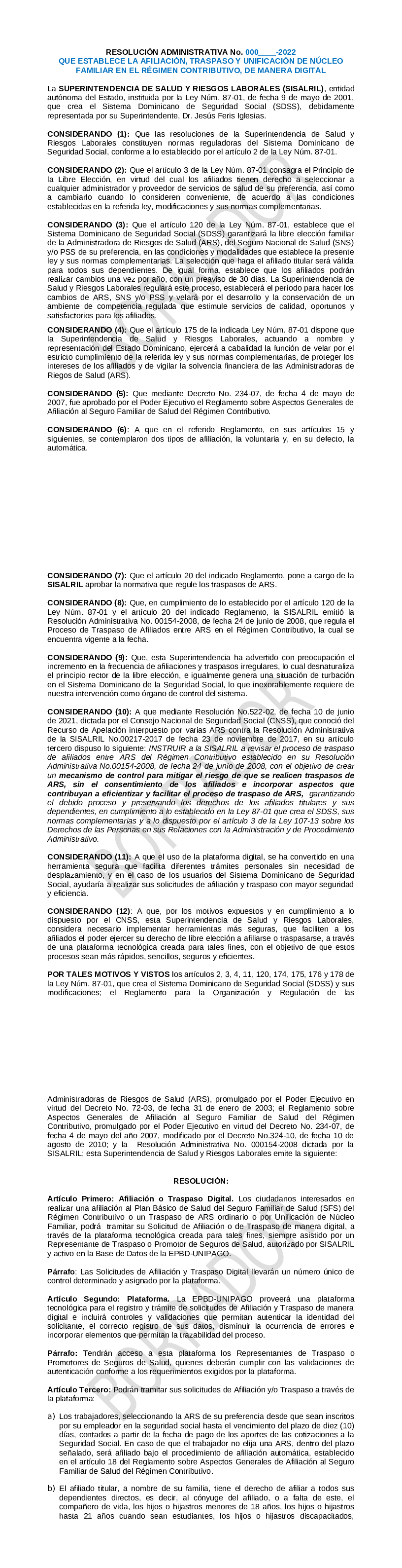 Borrador Resolucion Afiliacin y Traspaso Digital. V. definitiva 6-12-22