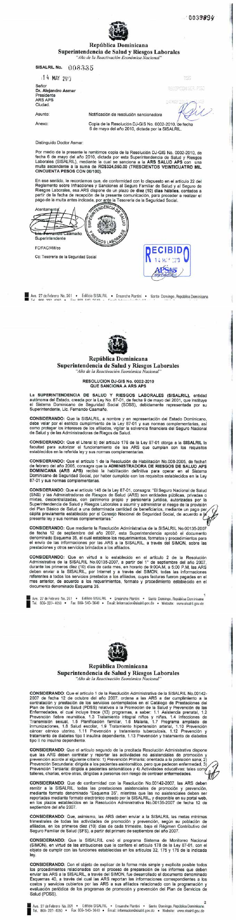 DJ-GIS No 0002-2010 que sanciona ARS APS