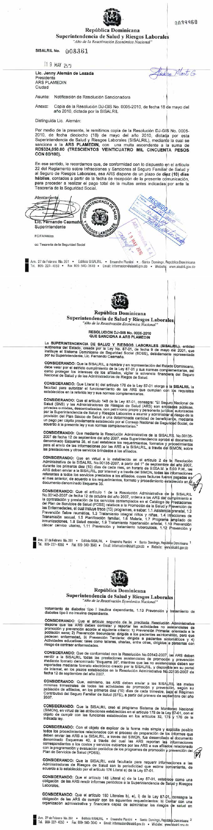 DJ-GIS No 0005-2010 que sanciona ARS PLAMEDIN