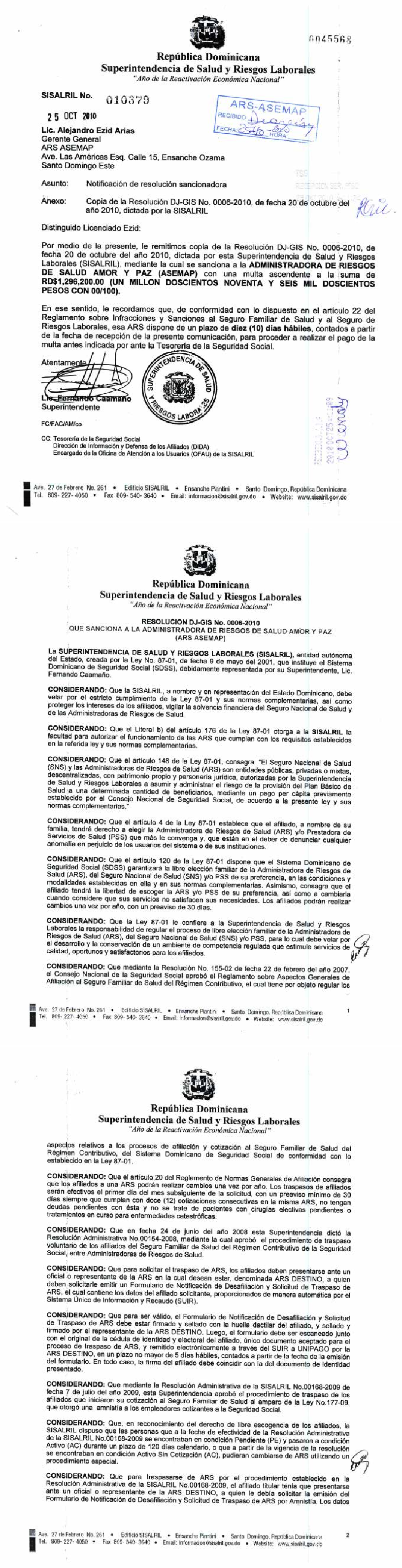 DJ-GIS No 0006-2010 que sanciona ARS ASEMAP