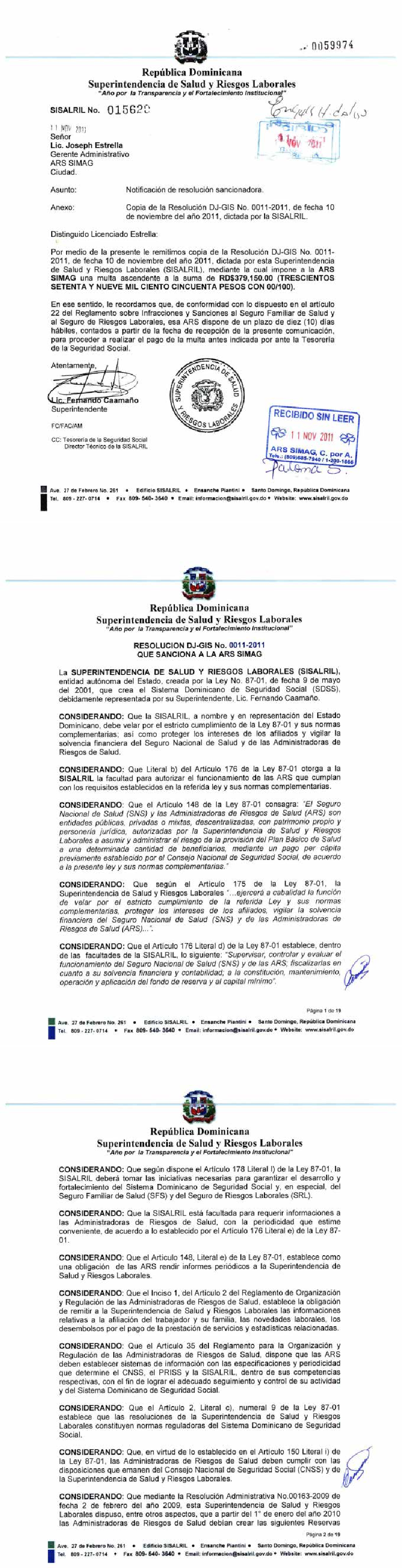 DJ-GIS No 0011-2011 que Sanciona a ARS SIMAG