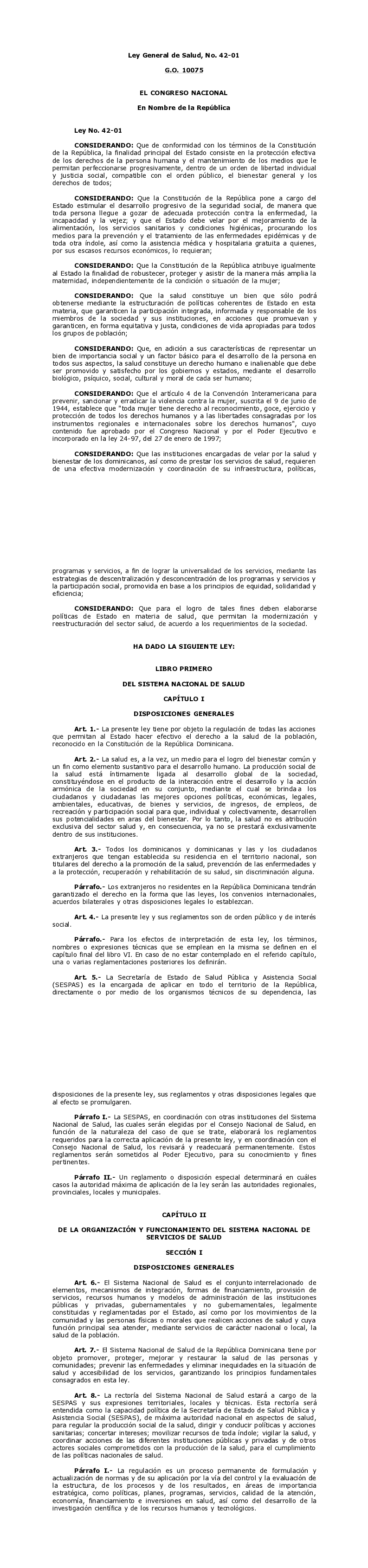 Ley General de Salud, No. 42-01