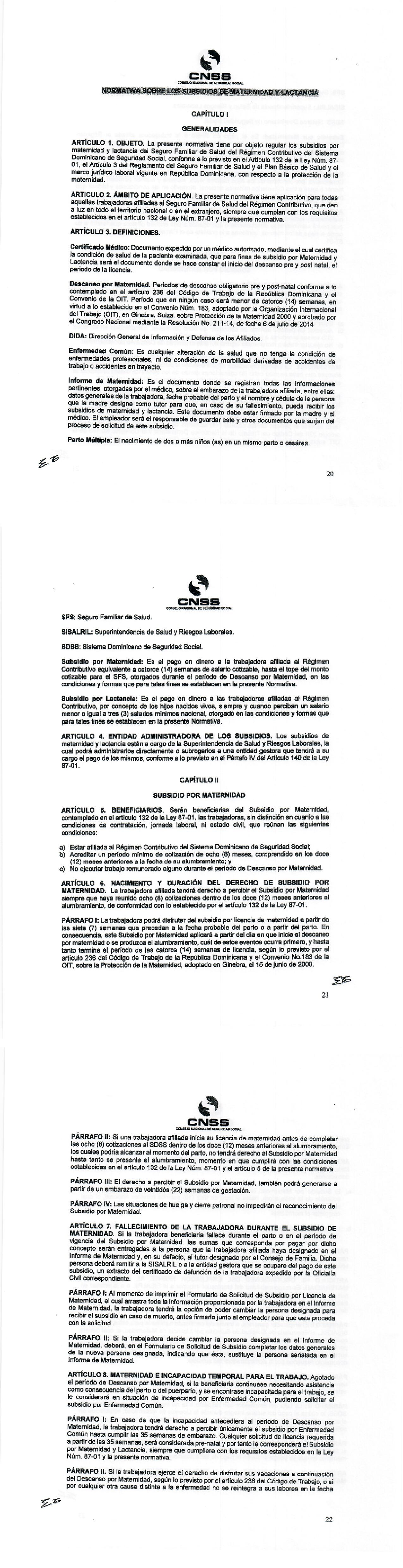 Normativa sobre los Subsidios de Maternidad y Lactancia