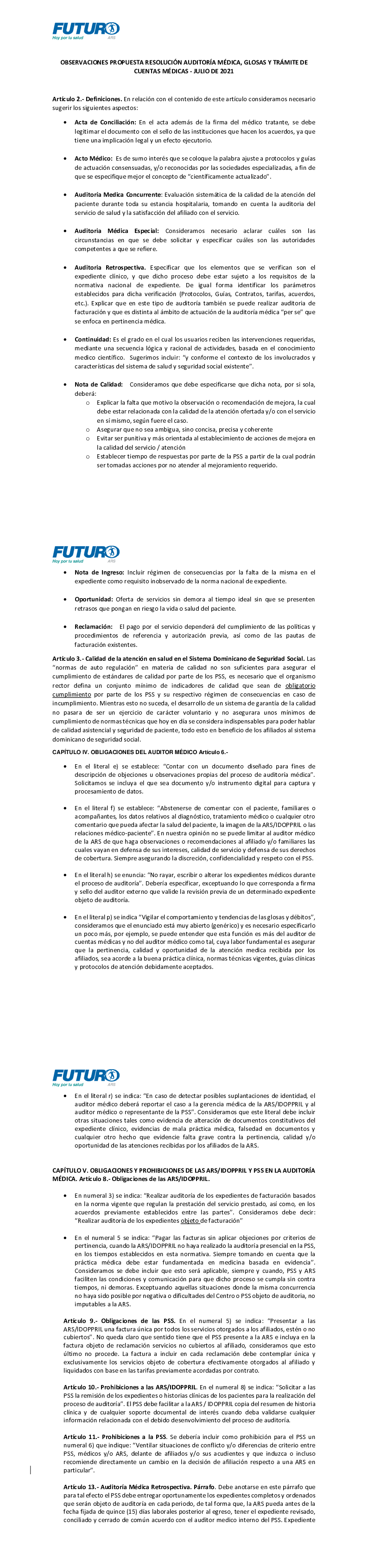 OBSERVACIONES PROPUESTA RESOLUCION AUDITORA MDICA