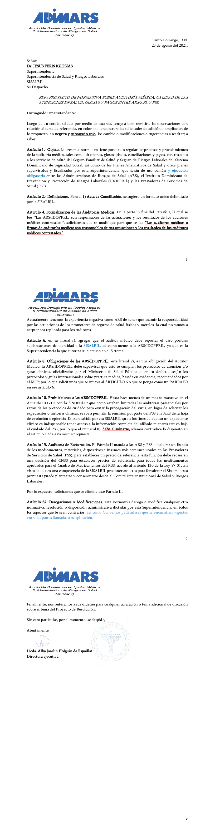 Opinin ADIMARS a la propuesta Normativa sobre Auditora Mdica