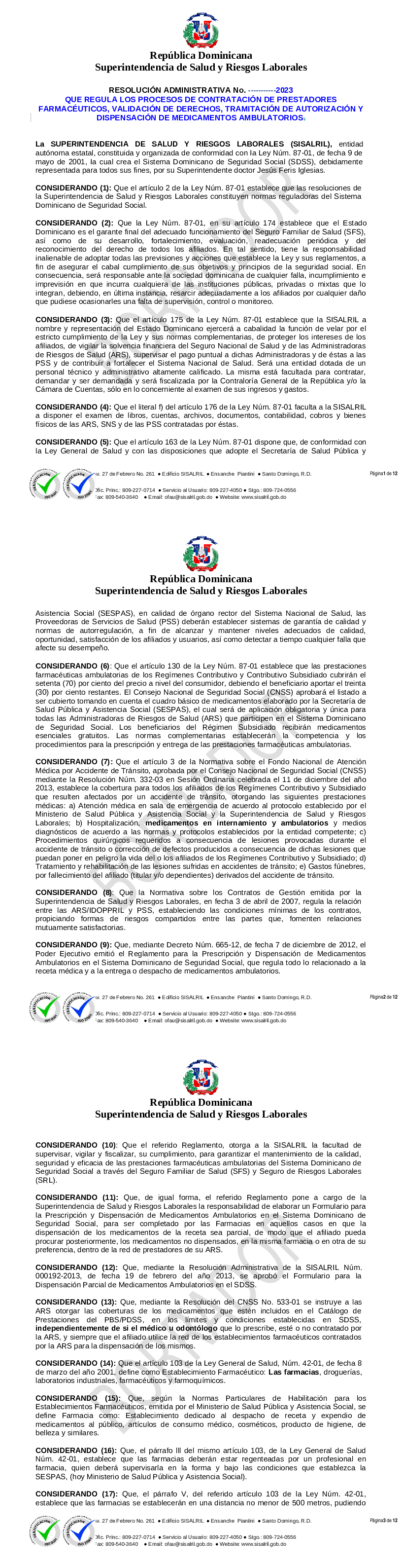 PROPUESTA RESOLUCIN QUE REGULA LA CONTRATACIN DE PRESTADORES FARMACUTICOS Y DISPENSACION DE MEDICAMENTOS REV. 3-07-2023