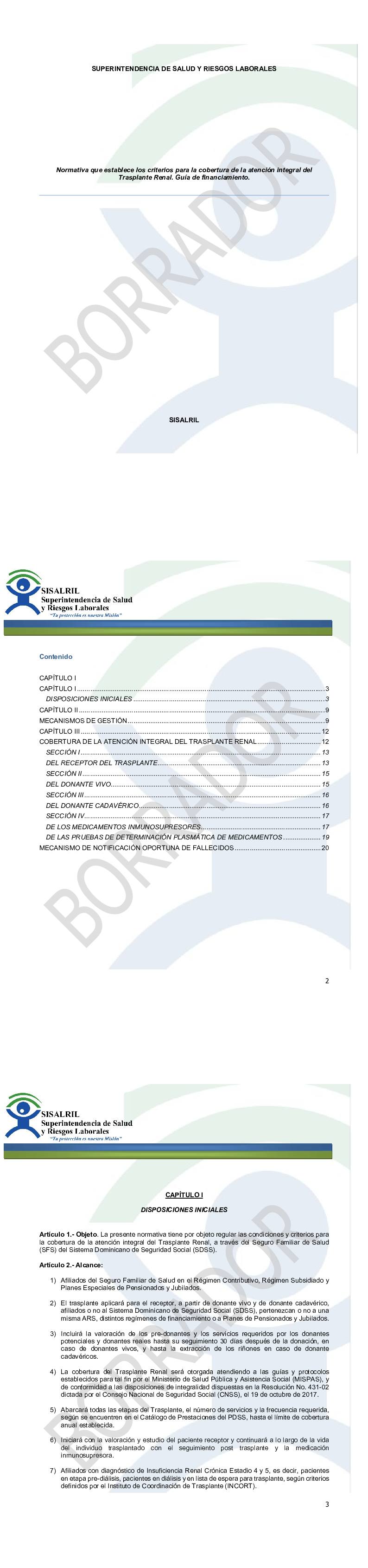 Proyecto de Normativa que establece criterios para la cobertura del trasplante renal