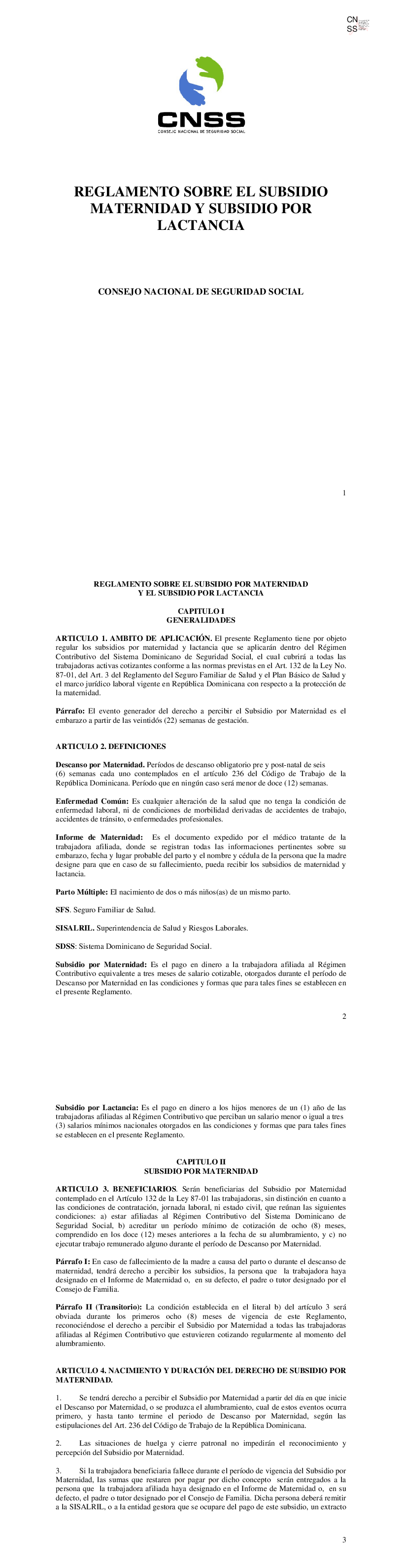Reglamento Sobre el Subsidios por Maternidad y Subsidio por Lactancia