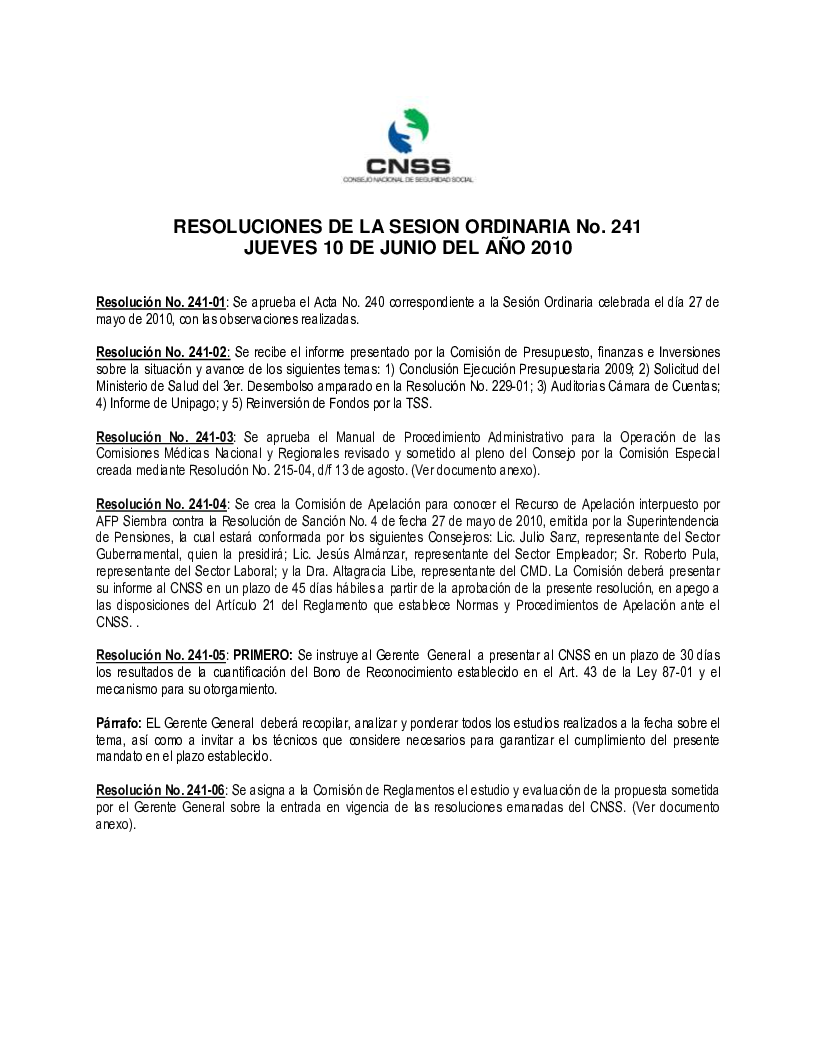 Res. CNSS No. 241-03