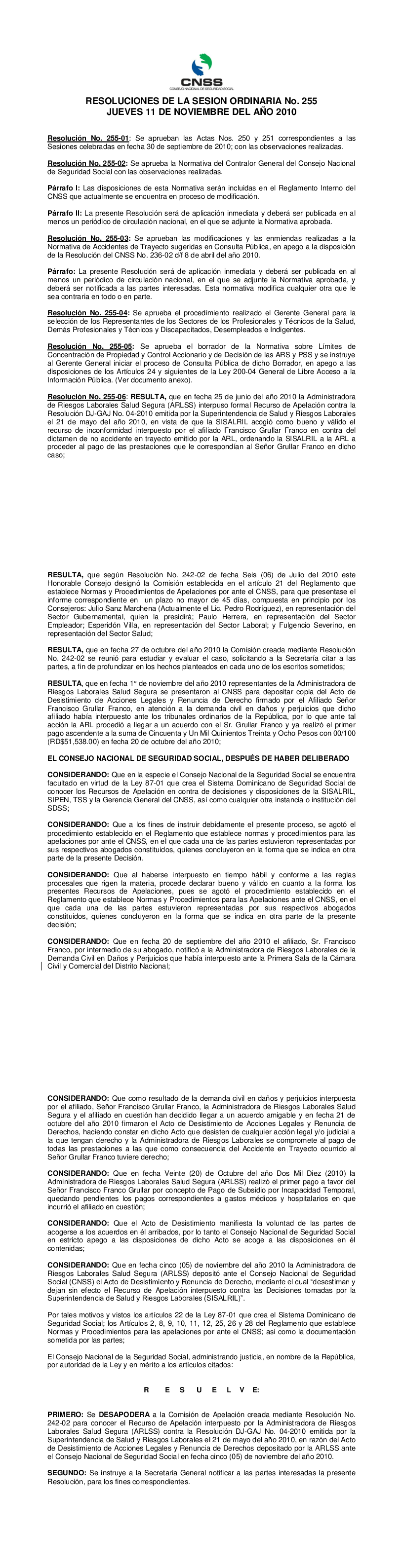 Res. CNSS No. 255-03
