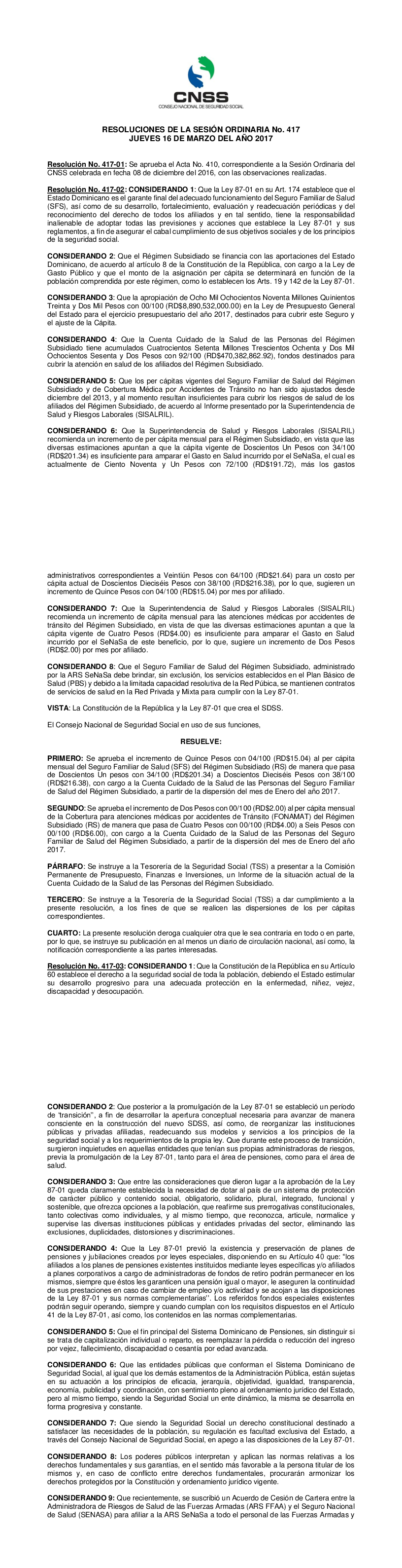 Res. CNSS No. 417-03