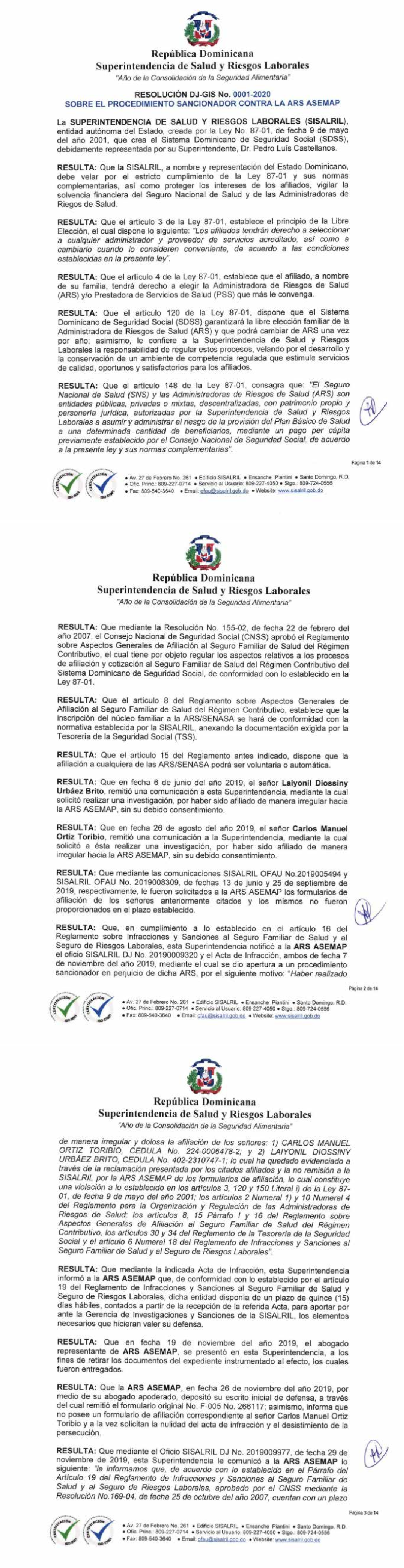 Res. Dj-Gis-0001-2020-Proc. Sancionador ARS ASEMAP