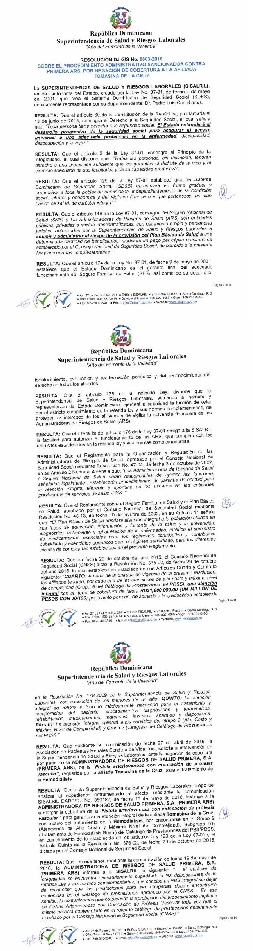 RES. DJ-GIS No. 0003-2016. Primera ARS