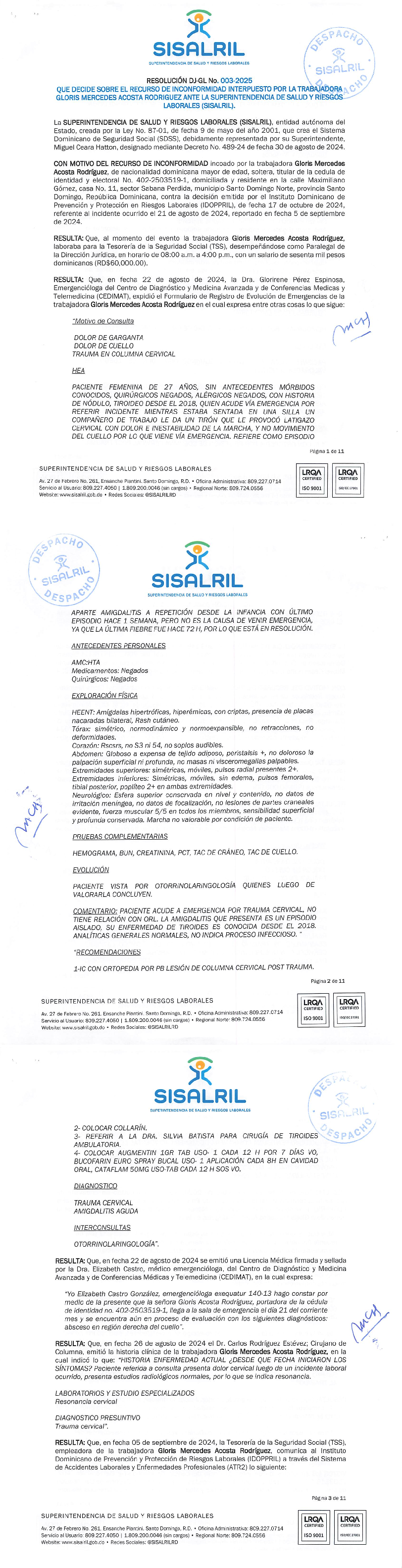 Res. DJ-GL- No. 003-2025 Que decide sobre el Recurso de Inconfomidad Gloris Mercedes Acosta