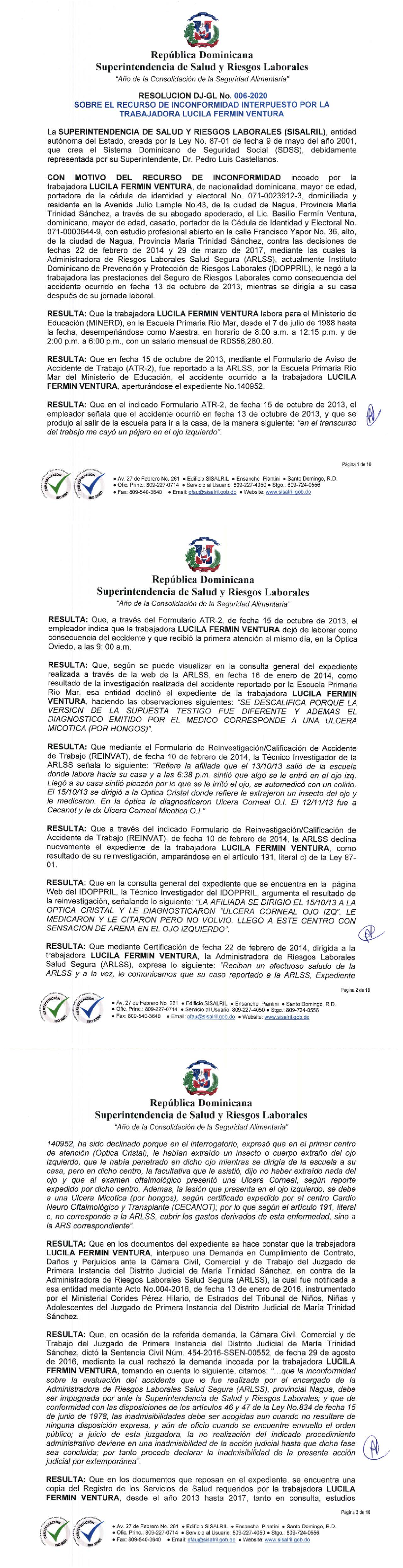 Res. DJ-GL No.006-2020 Lucila Fermin Ventura