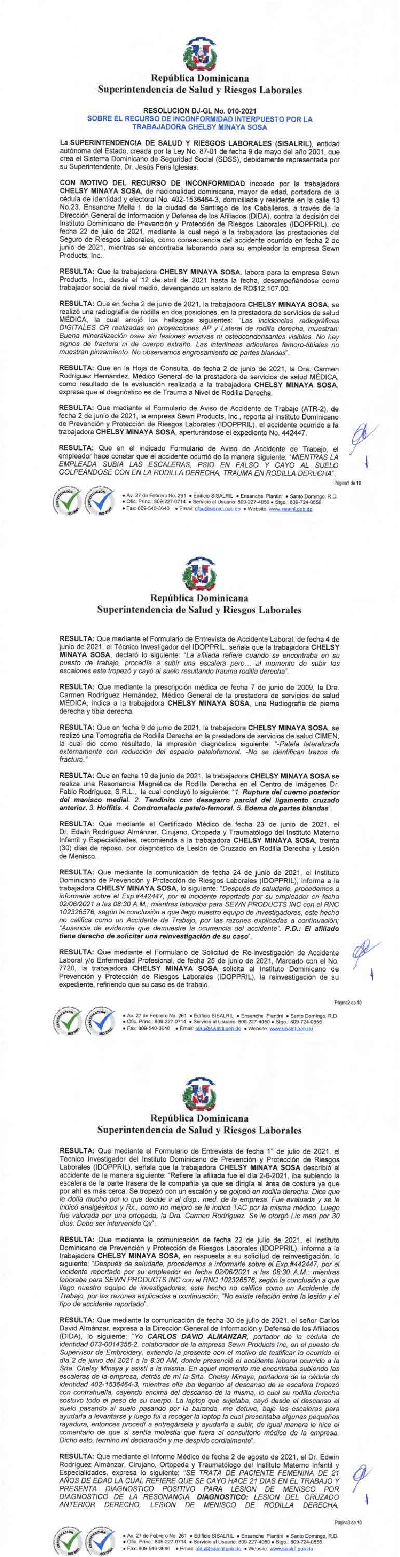 Res. DJ-GL No.010-2021 Chelsy Minaya Sosa