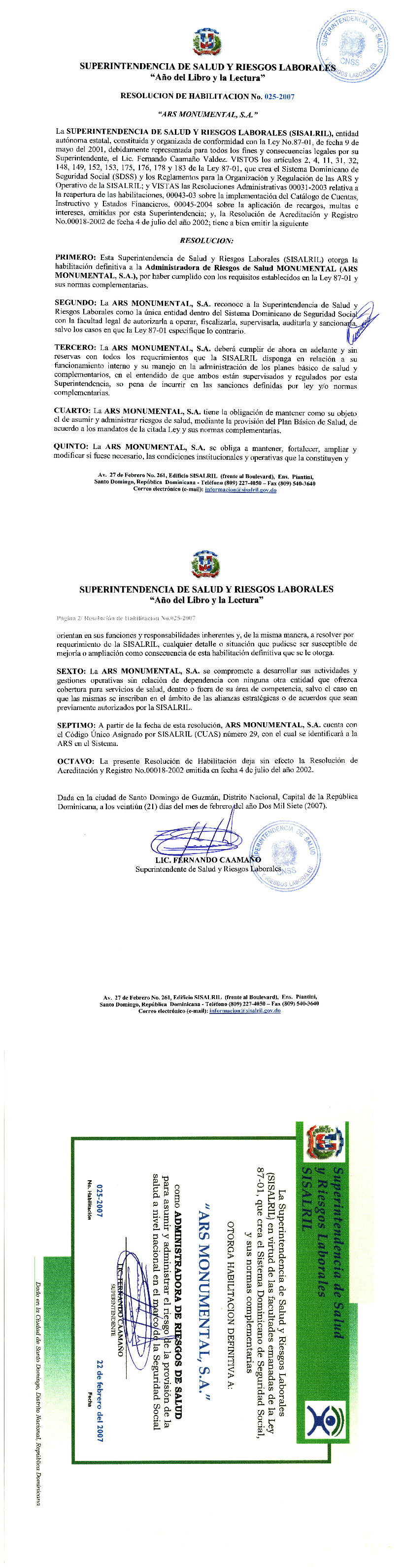 Res. Habilitacion No.025-2007 MONUMENTAL