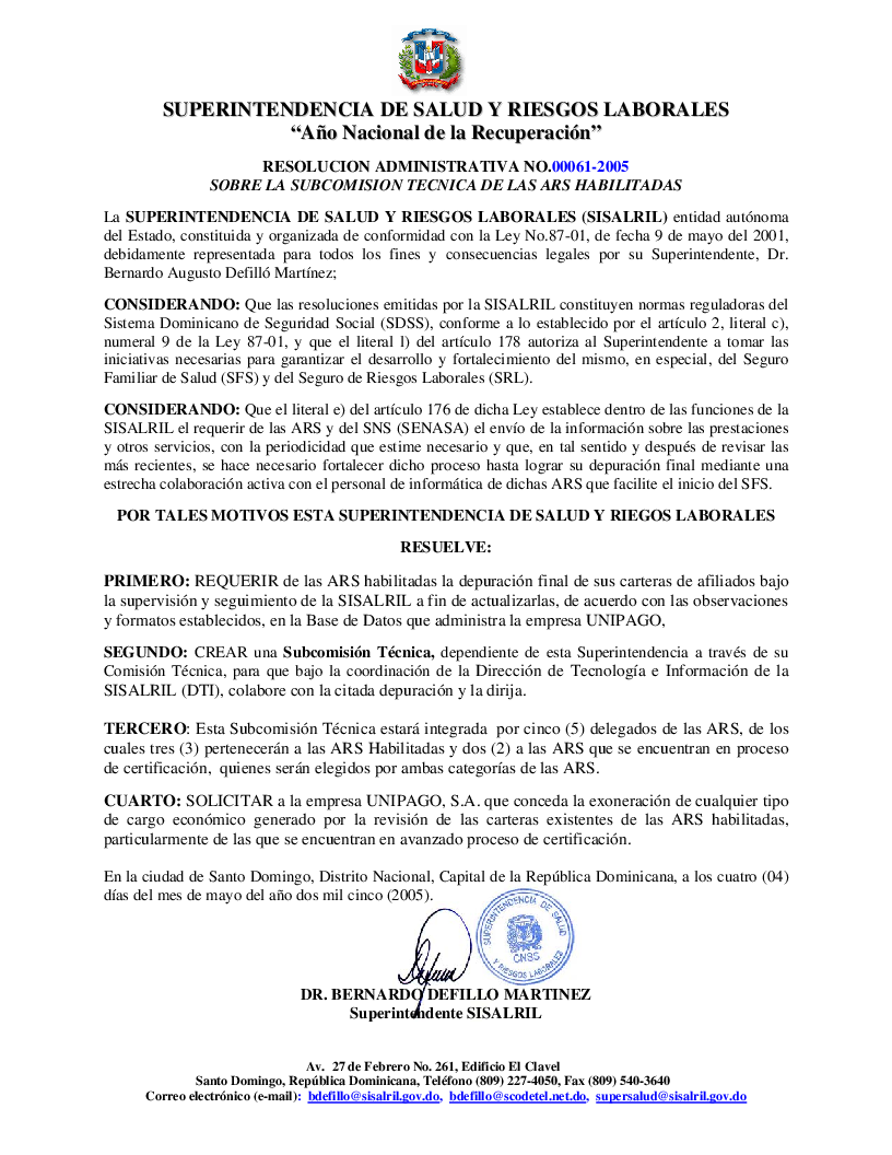 res_adm_no_00061-2005 sobre_cartera_depurada