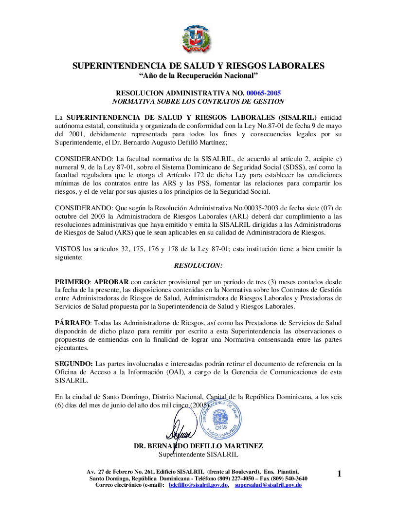 res_adm_no_00065-2005 Normativa Contratos Gestion