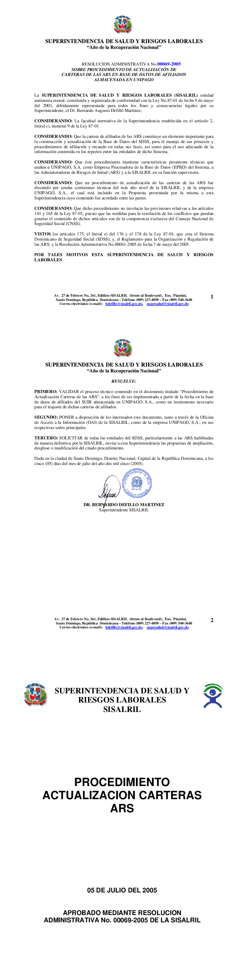 res_adm_no_00069-2005 Actualiza carteras ARS - Tot