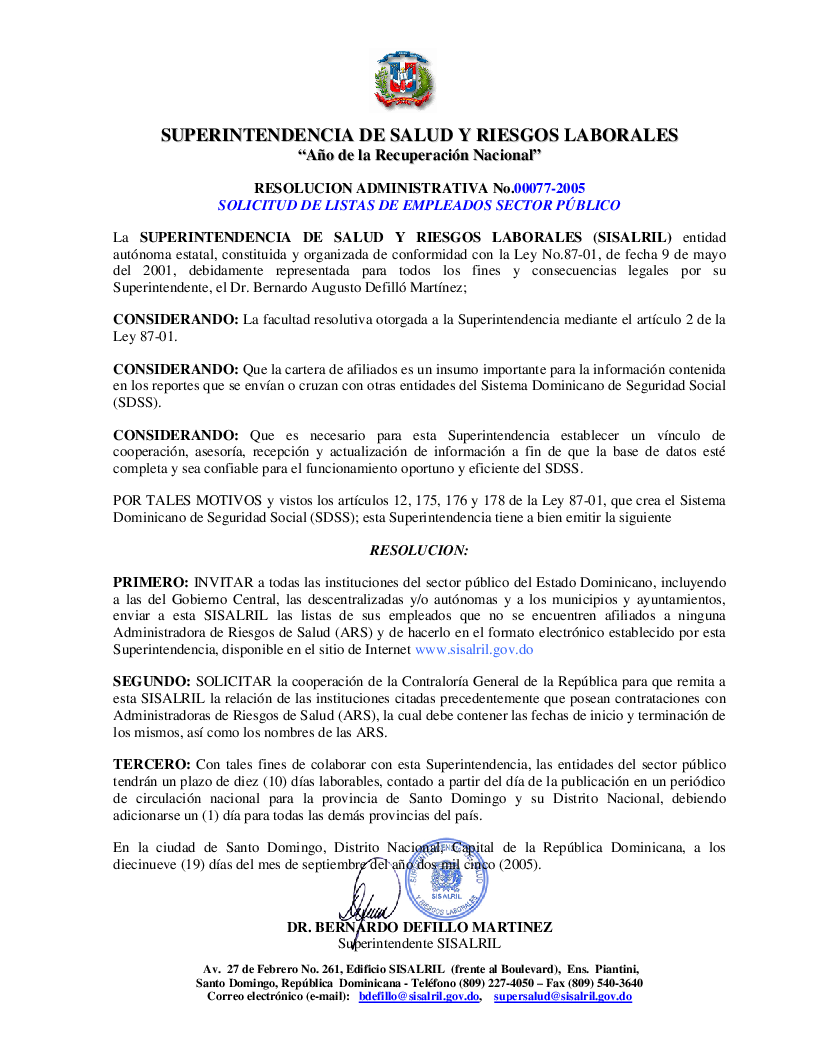 res_adm_no_00077-2005 carteras Sector Publ