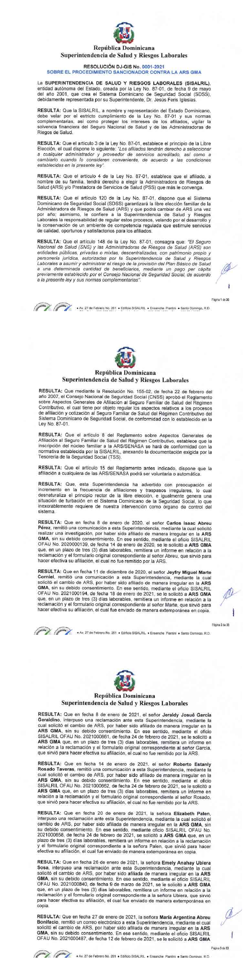 Resolucin DJ- GIS No. 0001-2021 ARS GMA