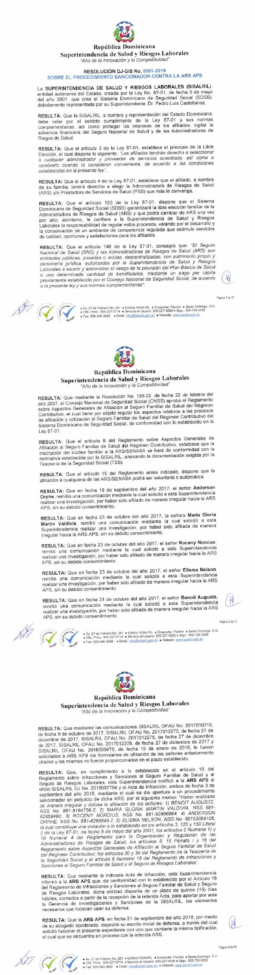 Resolucin DJ-GIS No. 001-2019 que sanciona a ARS APS