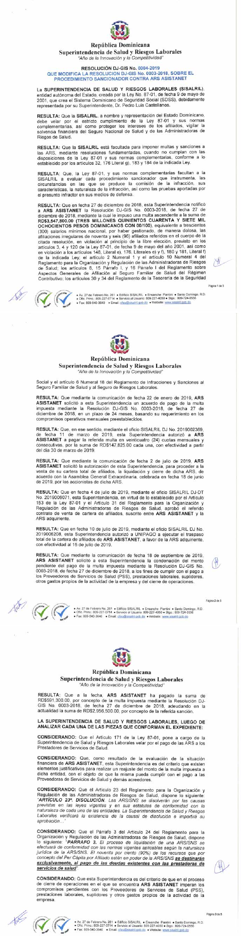 Resolucin DJ-GIS No. 004-2009 que modifica la DJ-GIS No.003-2018