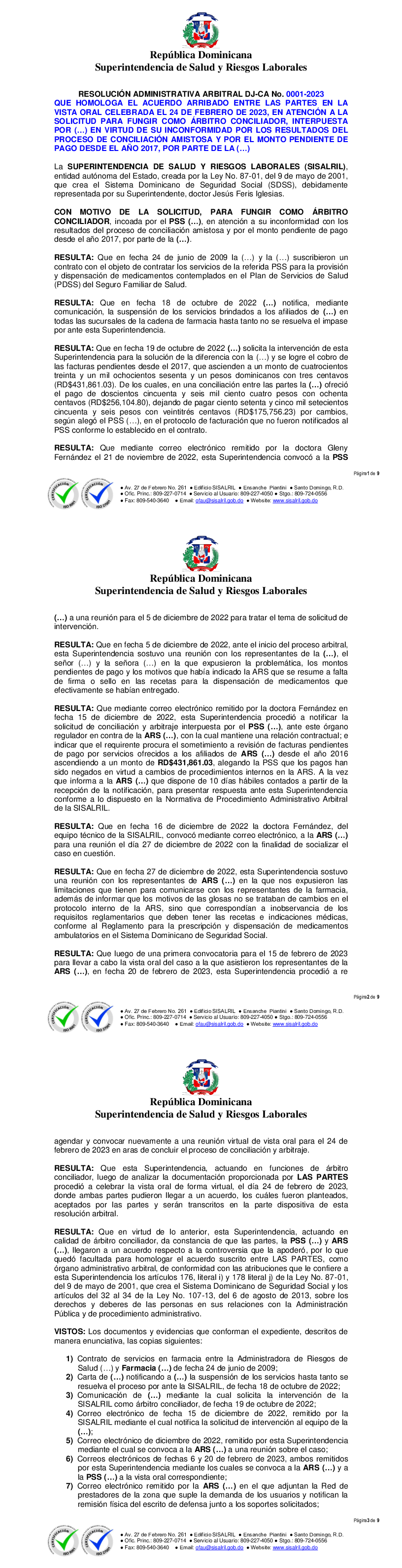 Resolución Administrativa Arbitral DJ-CA-001-2023.