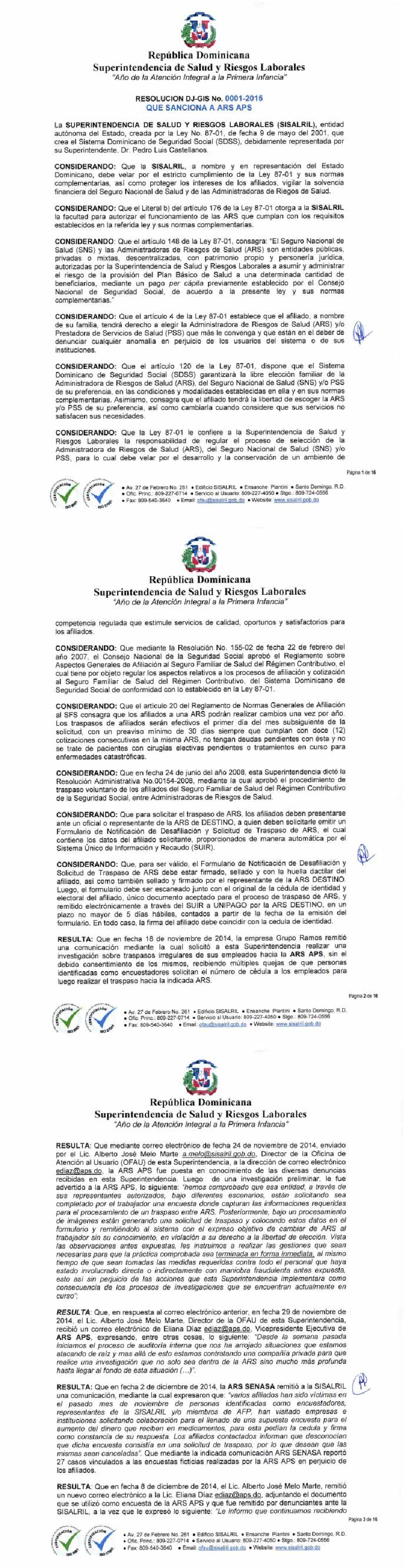 RESOLUCION DJ-GIS 0001-2015 ARS APS