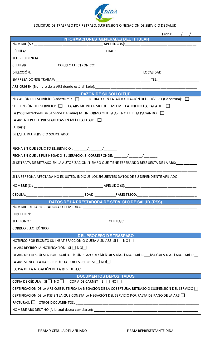 Solicitud de Traspaso por Retraso, Suspension o Negación de Servicio de Salud.